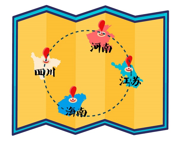 今年春節(jié),對(duì)于杜鄭麗一家有些特殊,因?yàn)樗麄円患宜目诘乩碜鴺?biāo)分別定在了四川、海南、河南和江蘇。