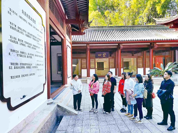 朱熹對我國古代的民本思想作出了闡釋和發(fā)揚(yáng),提出了“國以民為本”“平易近民,為政之本”等思想理念和“取信于民”“富民為本”的具體主張。圖為3月26日,游客參觀位于福建省南平市的朱熹園,了解朱熹的民本思想。黃亨營 攝