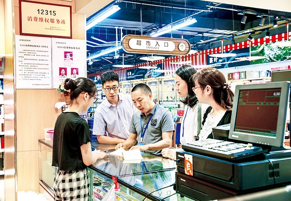 重慶市銅梁區紀委監委聯合相關單位深入大型超市、煙酒茶專賣店等,通過查看票據、現場咨詢等方式,嚴查公務接待中違規購買高檔酒水等問題。 孫正翠  攝