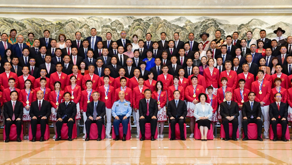 15日下午,習(xí)近平在陜西大會堂親切會見了全國群眾體育先進(jìn)單位、先進(jìn)個人代表和全國體育系統(tǒng)先進(jìn)集體、先進(jìn)工作者代表,東京奧運會中國體育代表團(tuán)運動員和教練員代表等,并同大家合影留念。習(xí)近平同大家親切交流,勉勵他們奮力拼搏、再創(chuàng)佳績。