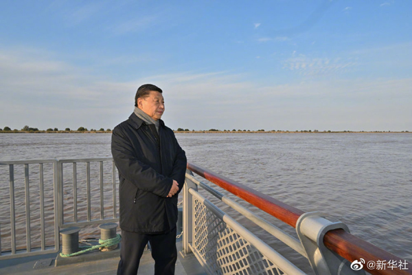 習近平總書記20日在山東省東營市考察黃河入??凇.斕煜挛?,他來到黃河入海口碼頭、黃河三角洲生態監測中心、黃河三角洲國家級自然保護區,實地察看黃河河道水情和黃河三角洲濕地生態環境,了解黃河流域生態保護和高質量發展等情況。(文字記者:張曉松、朱基釵;攝影記者:李學仁、謝環馳、王曄)