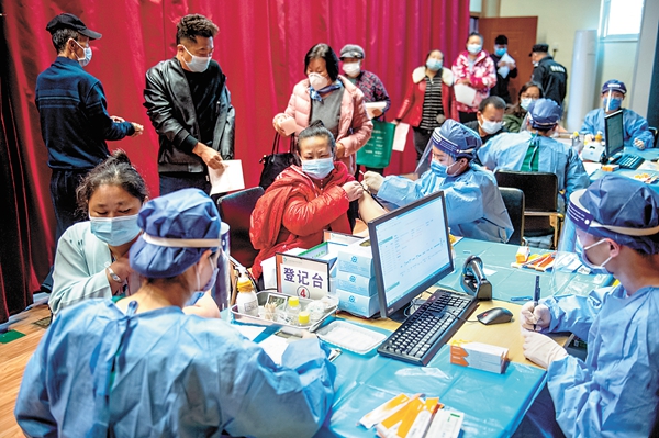 為進一步加固免疫屏障,北京市昌平區推進新冠疫苗加強針接種工作。圖為10月23日,市民在昌平區城北街道永安活動中心臨時接種點接種。 新華社記者 陳鐘昊 攝