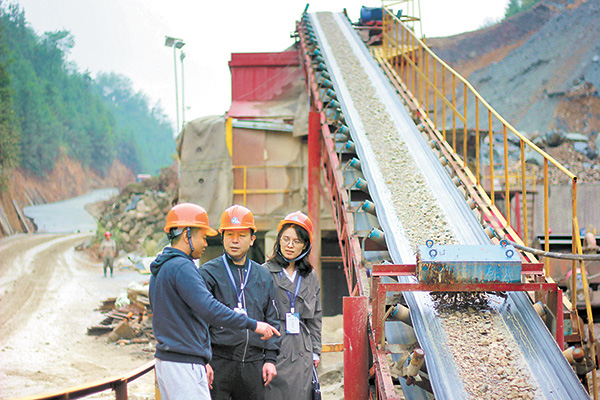 浙江省開化縣紀委監委開展室組聯動監督,深入采砂、采礦一線,通過現場了解、明察暗訪等方式,深挖“沙霸”“礦霸”背后腐敗和“保護傘”問題線索。圖為11月4日,檢查組成員在某砂石企業了解相關情況。余青青 攝