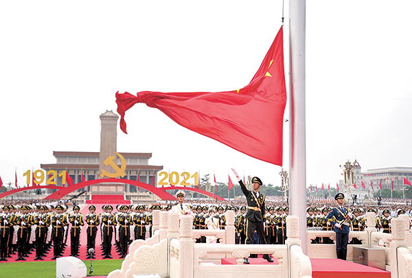 7月1日上午,慶祝中國共產黨成立100周年大會在北京天安門廣場隆重舉行。這是升國旗儀式。新華社記者 申宏 攝