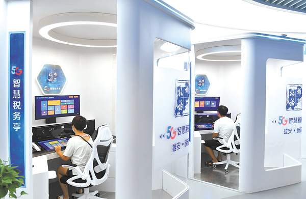 圖為河北雄安新區(qū)稅務(wù)局5G智慧辦稅服務(wù)廳內(nèi),民眾正在辦理業(yè)務(wù)。中新社記者 韓冰 攝