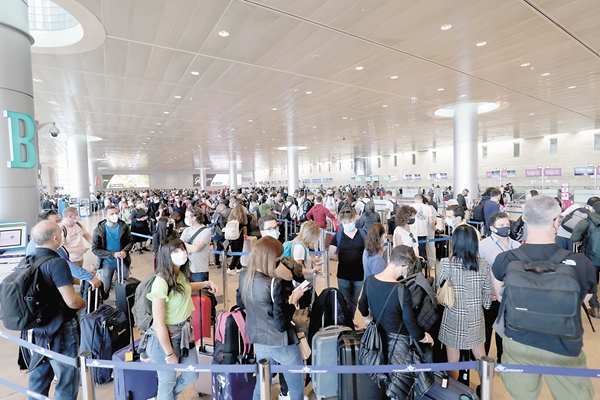 以色列新冠內閣11月27日晚舉行會議,批準了一系列應對措施,包括將從29日零時起關閉唯一的國際機場——本·古里安機場兩周,在此期間禁止外國人入境以色列,從國外返回的以色列人必須隔離。圖為11月28日,人們在以色列本·古里安國際機場出發(fā)大廳等待。新華社發(fā)(吉爾·科恩·馬根 攝)