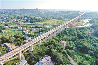 12月10日上午,連通贛南革命老區與深圳經濟特區的贛深高鐵正式開通運營。贛深高鐵的開通,結束了贛南地區沒有直達廣東高速鐵路的歷史,鋪就一條區域協調發展、共同富裕的希望之路。圖為聯調聯試列車在贛深高鐵柏埔河特大橋上駛過。 新華社發(張湘濤攝)