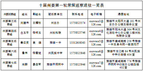 11月3日,楚雄州委5個常規巡察組完成對5家州級部門的巡察進駐工作,對州志辦、州社科聯、楚雄一中、州民族中學、楚雄師院附中5家州級單位黨組織開展常規巡察。