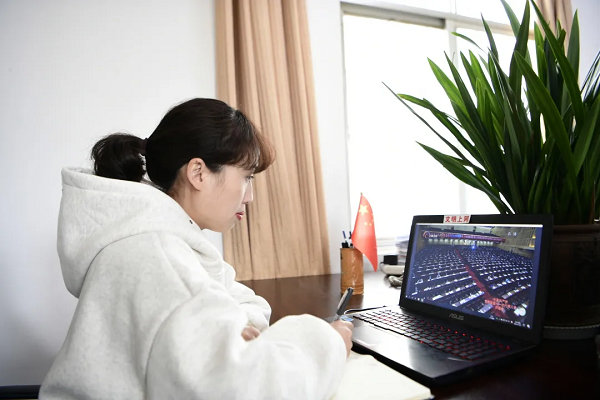 石林彝族自治縣紀委監委干部利用互聯網觀看省第十一次黨代會直播。(豈艷攝)