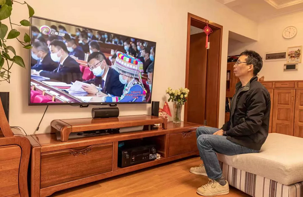 昆明市五華區大觀街道紀工委書記王廷彪積極收看中國共產黨云南省第十一次代表大會。