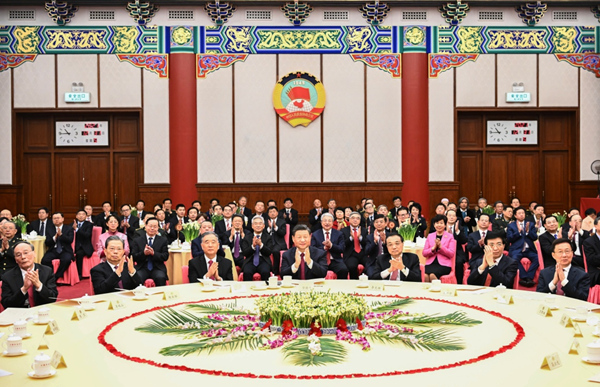 茶話會上,全國政協委員和文藝工作者表演了精彩的節目,會場氣氛喜慶熱烈。