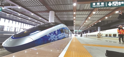1月6日上午,北京冬奧版復興號智能動車組在北京清河站正式上線。楊文佳 攝