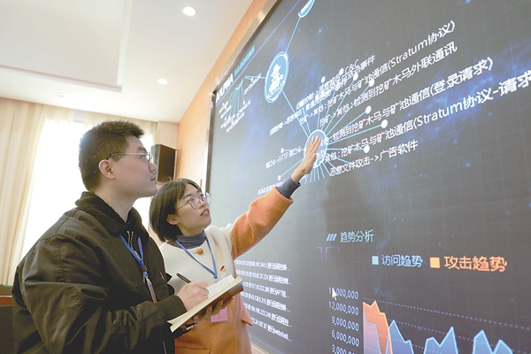 近期,浙江省武義縣紀委監委成立專項監督組,深入相關職能部門和機關單位,通過遠程監測、技術核查等方式,對利用公共資源參與虛擬貨幣“挖礦”與交易問題開展專項檢查。圖為專項檢查組在縣大數據中心利用大數據智能安全分析平臺了解相關情況。季文 攝