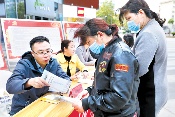 江蘇省連云港市海州區(qū)紀(jì)委監(jiān)委開展信訪宣傳專項(xiàng)行動(dòng),在鄉(xiāng)鎮(zhèn)集市、街道人流量大的地方現(xiàn)場(chǎng)接訪,傾聽群眾心聲,掌握第一手社情民情。圖為該區(qū)紀(jì)檢監(jiān)察干部向群眾講解信訪舉報(bào)受理流程。 張孟瑞 攝