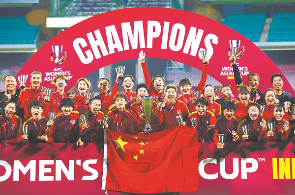2月6日晚,女足亞洲杯決賽在印度舉行,中國女足3︰2逆轉戰勝亞洲勁旅韓國隊,奪得冠軍。這是中國女足第9次捧起亞洲杯獎杯,超過其他任何一支球隊兩倍以上。“女足奪冠”迅速登上熱搜,姑娘們登上冠軍領獎臺、高舉獎杯的一幕令億萬中國人感到驕傲和自豪。