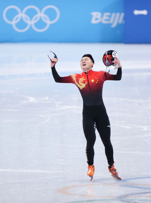 2月7日,任子威在比賽后慶祝。新華社記者 熊琦 攝