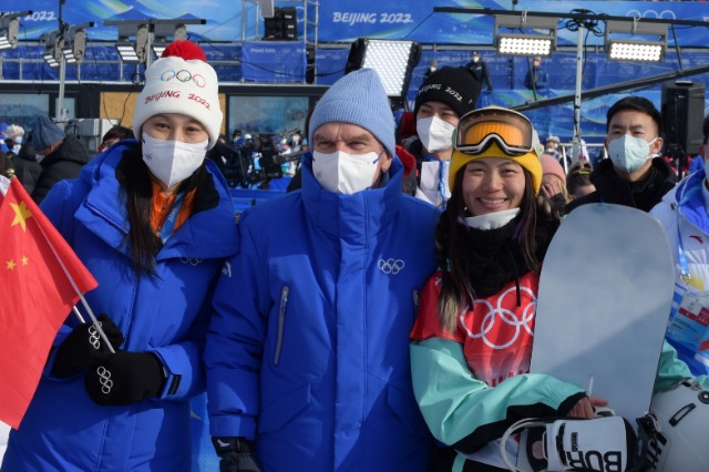 從首次參加冬奧會(huì)的第二十三名,到第二次的第六名,再到平昌冬奧會(huì)的第五和北京冬奧會(huì)的第四名,蔡雪桐每一次都在進(jìn)步。圖為現(xiàn)場觀戰(zhàn)的國際奧委會(huì)主席巴赫安慰蔡雪桐。瞿芃 攝