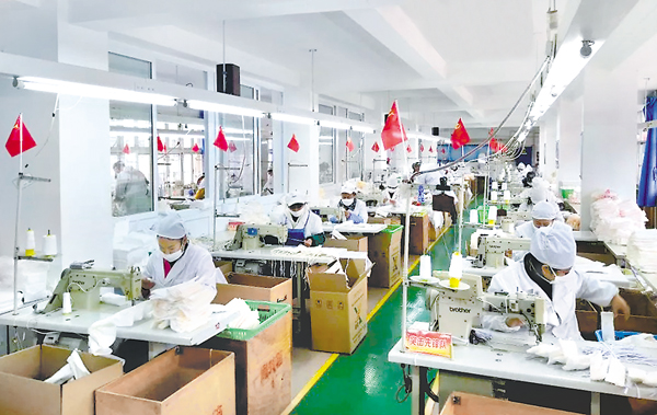 疫情期間,云錫勞動防護用品公司組織黨員和職工生產口罩,為云南省一線抗疫提供了重要防疫物資保障。 (云錫集團供圖)