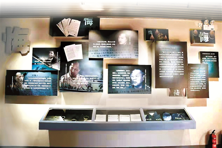 圖為河南省安陽縣警示教育基地思廉廳中的懺悔墻,以違紀違法干部的懺悔書為背景,突出泣著血淚的“悔”字。邵煥 攝