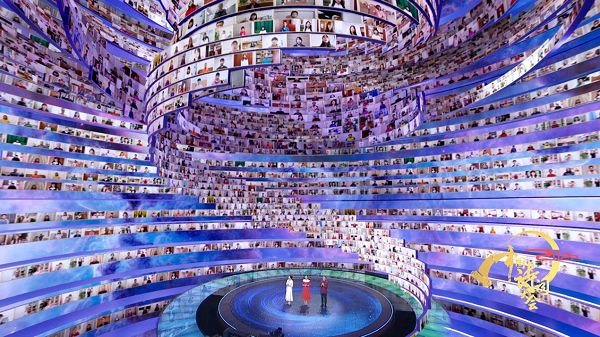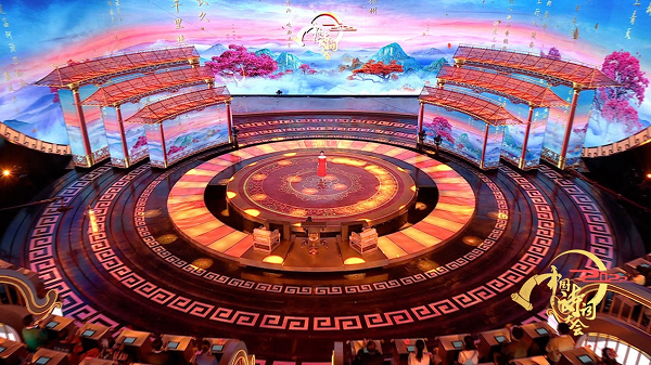 滿滿的科技質感,是《2022中國詩詞大會》的亮點之一。據創作團隊介紹,本季節目在技術上實現了全球電視節目中千人視頻連線,“云中千人團”的影像集合被藝術性地幻化為旋轉向上的天階,營造出一種“欲與天公試比高”的攀登感。現場舞美則以千年敦煌的恢弘穹頂為靈感來源,呈現出古今碰撞、四海共讀的震撼場景,寓意經典詩詞穿越古今,照耀當下,點亮人心。此外,鏡前虛擬等先進技術的運用,以及立體的外景連線視角,將變“知識競答”為“沉浸觀影”,讓觀眾投身一場酣暢淋漓的“詩詞遨游”。