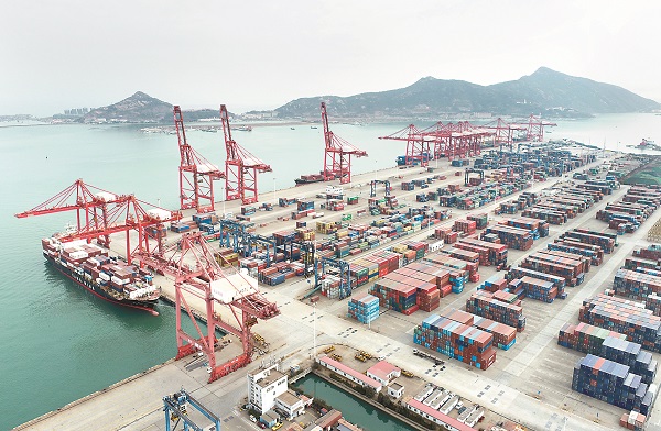 海關總署近日發布數據,今年前2個月,我國貨物貿易進出口總值6.2萬億元,同比增長13.3%。其中,出口3.47萬億元,增長13.6%;進口2.73萬億元,增長12.9%,實現今年外貿穩起步。圖為江蘇連云港港口集裝箱碼頭場景。新華社發(王健民 攝)