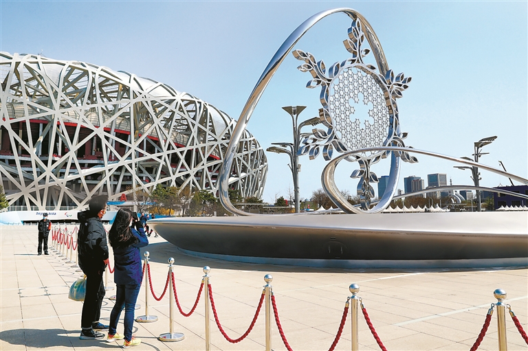 4月6日,隨著北京2022年冬奧會和冬殘奧會封閉管理工作完成,北京奧林匹克公園中心區恢復對外開放,吸引眾多游客前來拍照留念。(圖片來源:視覺中國)