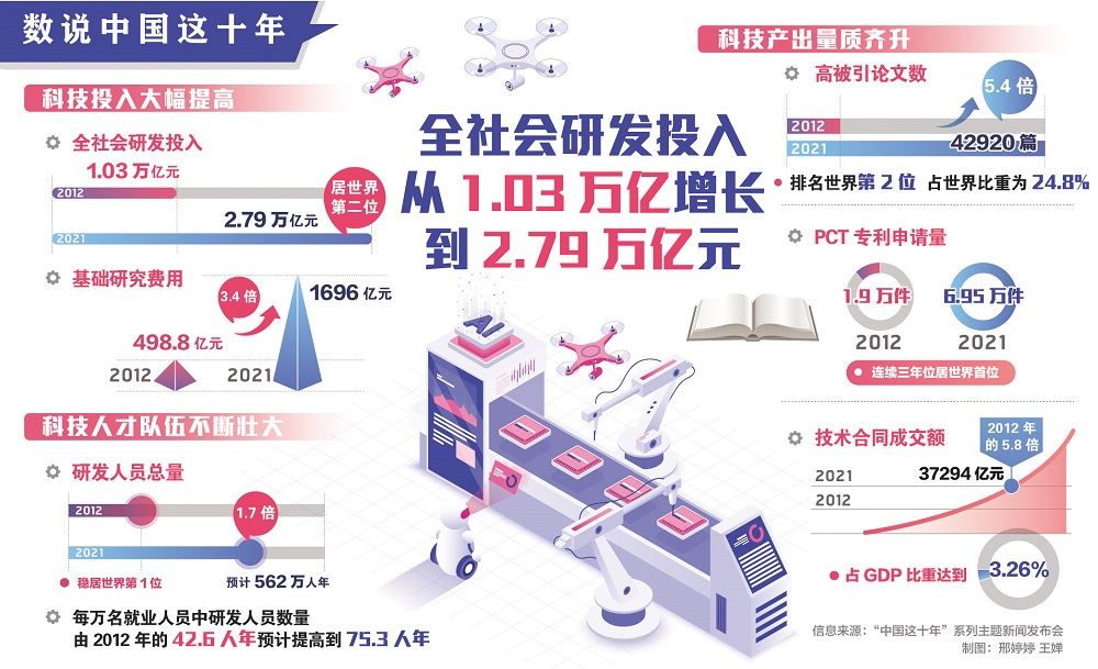 數說中國這十年丨全社會研發投入從1.03萬億增長到2.79萬億元
