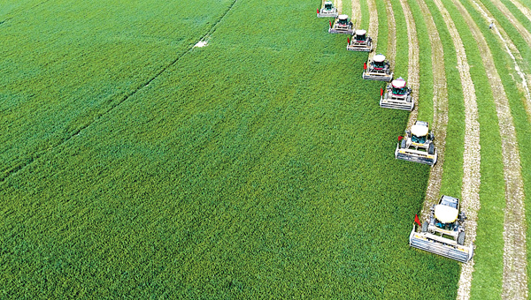 政治生態(tài)不斷好轉(zhuǎn),給甘肅省農(nóng)墾集團(tuán)發(fā)展帶來(lái)了實(shí)實(shí)在在的收益,企業(yè)利潤(rùn)總額實(shí)現(xiàn)了由虧損到盈利的轉(zhuǎn)變。圖為該集團(tuán)對(duì)50萬(wàn)畝優(yōu)質(zhì)苜蓿草產(chǎn)業(yè)進(jìn)行機(jī)械化收割作業(yè)。劉忠文 攝
