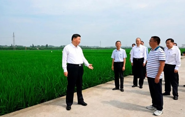 “水稻良種育種周期長,需要反復試驗篩選……”總書記對農業生產十分熟悉。在永豐村的高標準水稻種植基地,習近平總書記察看水稻長勢,對他們堅持糧食種植助力保障國家糧食安全的做法表示肯定。