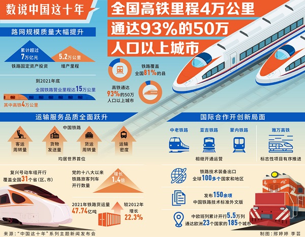 數說中國這十年丨全國高鐵里程4萬公里 通達93%的50萬人口以上城市