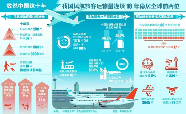 數說中國這十年 | 我國民航旅客運輸量連續18年穩居全球前兩位