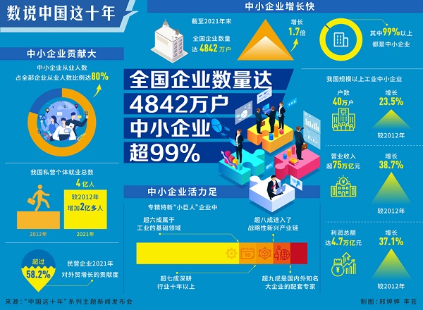 數說中國這十年丨全國企業數量達4842萬戶 中小企業超99%