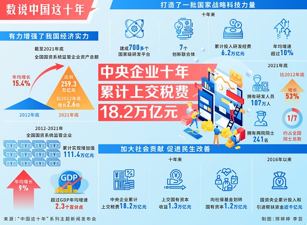 數(shù)說中國(guó)這十年 | 中央企業(yè)十年累計(jì)上交稅費(fèi)18.2萬億元