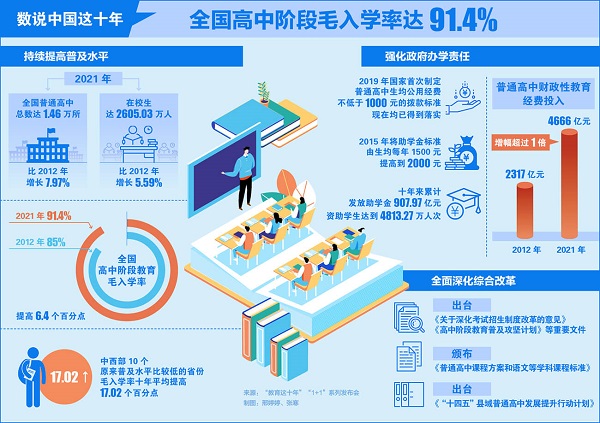 數說中國這十年 | 全國高中階段毛入學率達91.4%