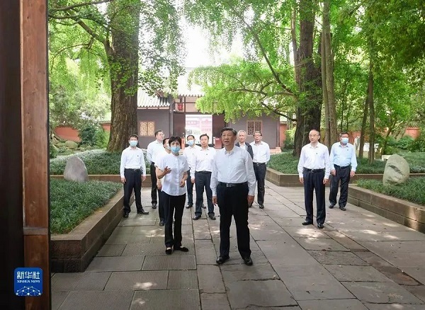 2022年6月8日,習近平在四川考察。這是8日上午,習近平在眉山市三蘇祠考察。新華社記者 申宏 攝