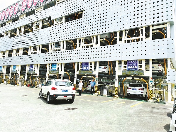 湖北省恩施市推廣垂直循環(huán)立體停車樓,拓展城市空間,破解城市停車難題。圖為恩施市自然資源和規(guī)劃局院內(nèi)的立體停車樓,可供社會車輛使用。甘娜 攝