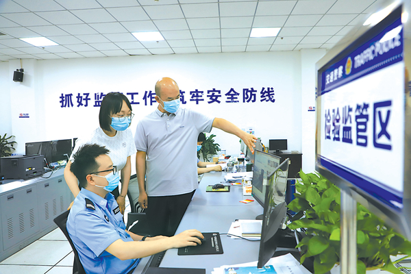 圖為四川省德陽市紀委監委案件查辦組人員通過公安交警車輛管理監管平臺,分析研究有關問題線索。朱航睿 攝