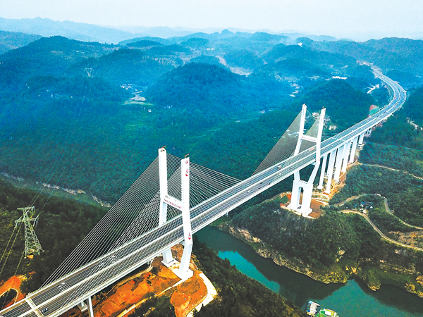 作為中國唯一沒有平原的省份,貴州在喀斯特高原上架起2萬余座橋梁,創造了數十個“世界第一”。這些橋梁,不僅是出山路、產業路、旅游路,更是人們擺脫貧困、奔向小康的致富路。圖為蘭海高速貴陽至遵義復線擴容工程楠木渡烏江特大橋。新華社記者 楊文斌 攝