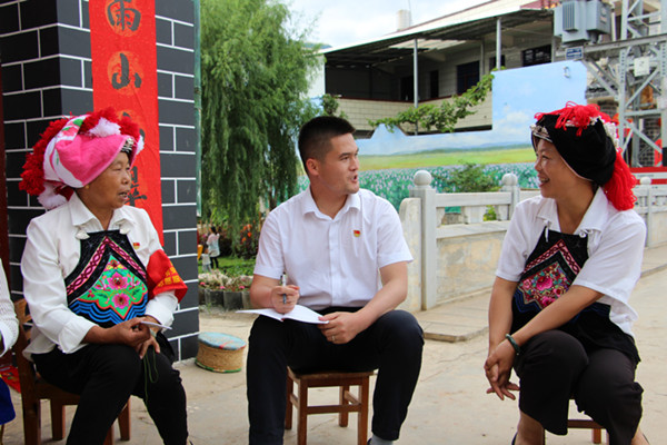 云南省蒙自市紀委監委組織紀檢監察干部下沉一線收集群眾意見建議,了解項目建設是否合規、資金撥付是否合理,為鄉村振興戰略順利實施保駕護航。圖為蒙自市紀檢監察干部在鄉村旅游“火爆”的新安所街道扎下社區窯房村向群眾了解情況。徐雪 攝