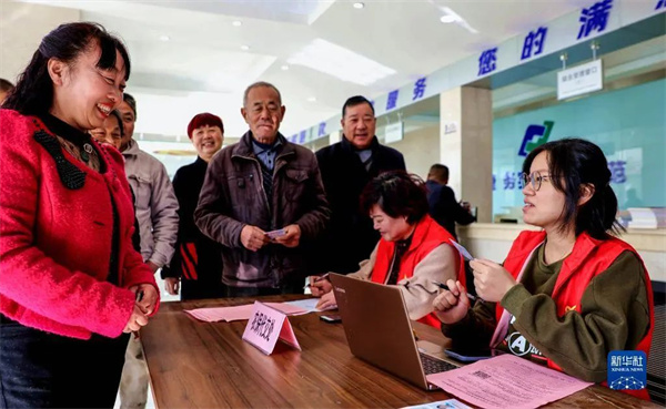 河北省邢臺市襄都區宴家屯鎮綜合服務中心工作人員協助辦事群眾填寫相關表格(2022年3月30日攝)。新華社發(張馳 攝)