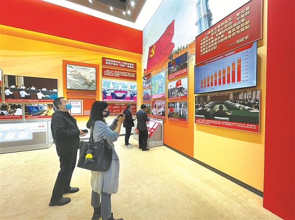 近日,“奮進(jìn)新時(shí)代”主題成就展在北京展覽館正式開(kāi)幕。圖為觀眾參觀“全面從嚴(yán)治黨 保持黨的生機(jī)活力”展區(qū)。 本網(wǎng)記者 李玉龍 攝