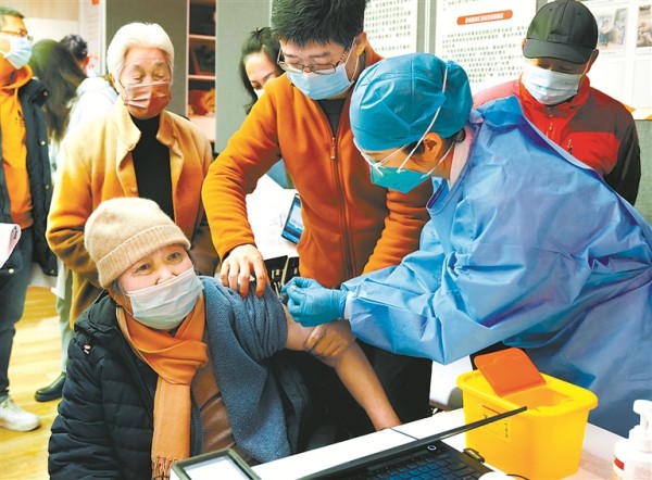 上海市黃浦區(qū)打浦橋街道有常住人口約4.6萬人,其中60歲以上居民約占38%。近期,隨著新冠疫苗宣傳科普的深入和疫情防控政策優(yōu)化調(diào)整,老年人接種新冠疫苗的需求有所增加。打浦橋街道社區(qū)衛(wèi)生服務(wù)中心同步開展固定點(diǎn)位與機(jī)動(dòng)小隊(duì)進(jìn)小區(qū)兩種接種模式,擴(kuò)大接種覆蓋面。對(duì)出行不便的老年人,由入戶接種小分隊(duì)打通接種“最后一公里”。圖為12月9日,接種小分隊(duì)的護(hù)士在大同居委會(huì)為老年人接種新冠疫苗。新華社記者 劉穎 攝