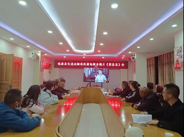 鎮康縣交通運輸局組織干部職工集中觀看《零容忍》第一集。(李義 攝)