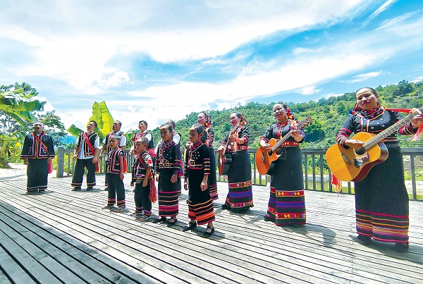 李娜倮依稀記得,剛懂事那會兒,有一天,喜歡唱歌的父親李石開把一把吉他帶回寨子,從此家里便多了幾分歡樂。父親邊彈邊唱,小娜倮就在一旁跟著大人學跳舞,學唱歌。拉祜人的蘆笙舞、擺舞、吉他彈唱讓小娜倮受到了最初的藝術熏陶。李石開看到女兒是一塊可琢之玉,就全身心地傳藝于她。李娜倮十三歲學會了吉他彈唱,十六歲開始了歌曲創作,至今創作了三十多首歌曲,占現存三百多首拉祜民歌的十分之一。到了2013年,多才多藝的李娜倮趕上了精準扶貧的好時光,年紀輕輕就做了瀾滄老達保快樂拉祜演藝有限公司的副董事長。她和父親聯手用拉祜文化闖出一條致富路,也成了全寨子第一個吃螃蟹的人。她心里很清楚,之前,老達保集體經濟收入匱乏,是個“空殼村”,鄉親們也習慣于靠種植業謀生,沒有別的財路。她就想把這家農民自發自創的演藝公司,變成老達保的“搖錢樹”,讓五百多村民全都入股,走一條共同富裕的大路。