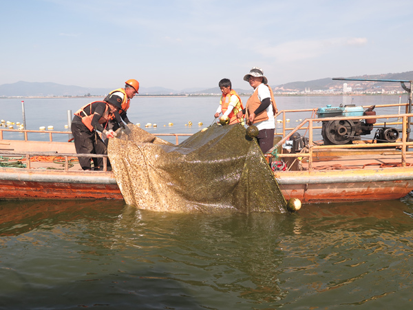 云南省紀(jì)委監(jiān)委嚴(yán)肅查處“玉溪杞麓湖污染治理治標(biāo)不治本、水質(zhì)長(zhǎng)期得不到改善”典型案例,同步推進(jìn)發(fā)現(xiàn)問題、分析問題、解決問題。圖為通??h紀(jì)委監(jiān)委督促相關(guān)部門拆除湖中柔性圍隔等干擾水質(zhì)監(jiān)測(cè)的設(shè)施。柏元?jiǎng)?攝