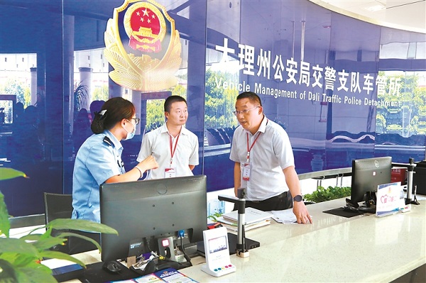 大理州紀委監委駐州公安局紀檢監察組結合交警行業特點,圍繞崗位廉政風險防控、服務群眾等方面開展日常監督檢查。圖為8月11日,該紀檢監察組工作人員在州公安局交通警察支隊車管所了解相關情況。楊源 攝