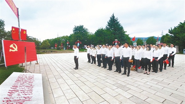 為督促紀檢監察干部增強使命擔當,切實履職盡責,云南省曲靖市麒麟區利用本地紅色資源對紀檢監察干部開展教育。圖為該區紀檢監察干部到三元宮愛國主義教育基地接受教育,重溫入黨誓詞。 羅白云 攝