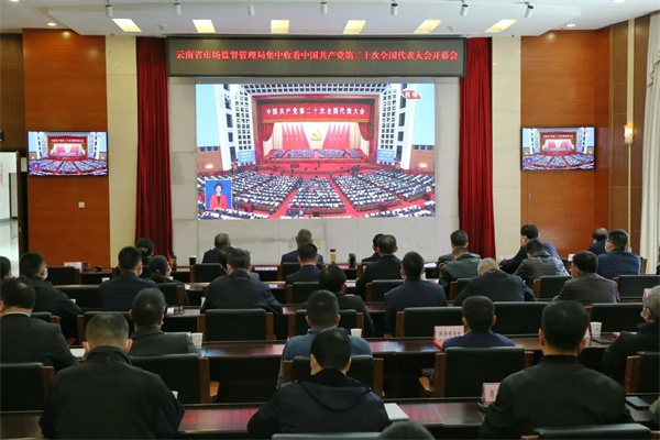 昆明市紀委監(jiān)委收聽收看黨的二十大開幕會現(xiàn)場直播。