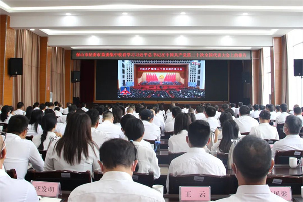 保山市紀委監(jiān)委組織全體紀檢監(jiān)察干部集中收看黨的二十大直播實況。