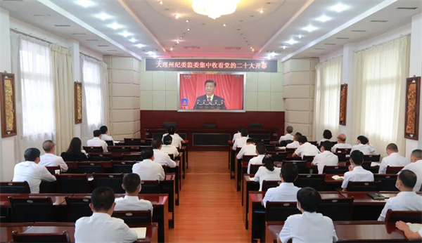 德宏傣族景頗族自治州紀委監(jiān)委組織全體黨員領(lǐng)導干部集中收聽收看黨的二十大開幕會。